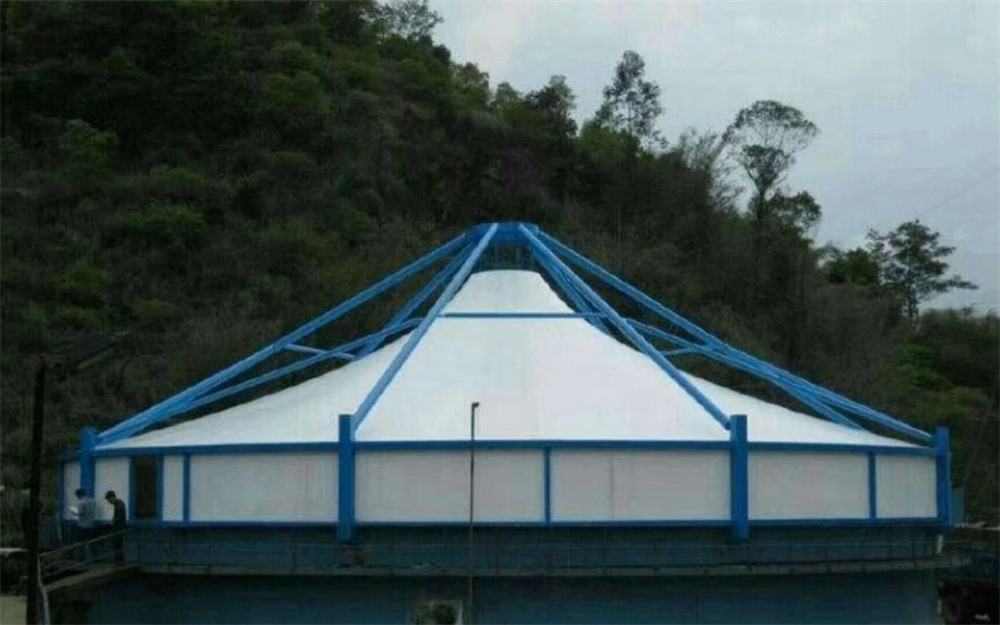 膜结构污水池加盖是一种新型的处理污水池废气的方法,这种方法不仅结构新颖,而且造型优美,安装,维修方便,充分发挥了膜结构建筑的优势。膜结构污水池加盖是以钢结构为主,将膜材反吊的形式进行污水池废气除臭。膜结构污水池加盖作为新型的污水池废气除臭方法,在膜材性能,结构安装和施工方面都具有很大的优势: