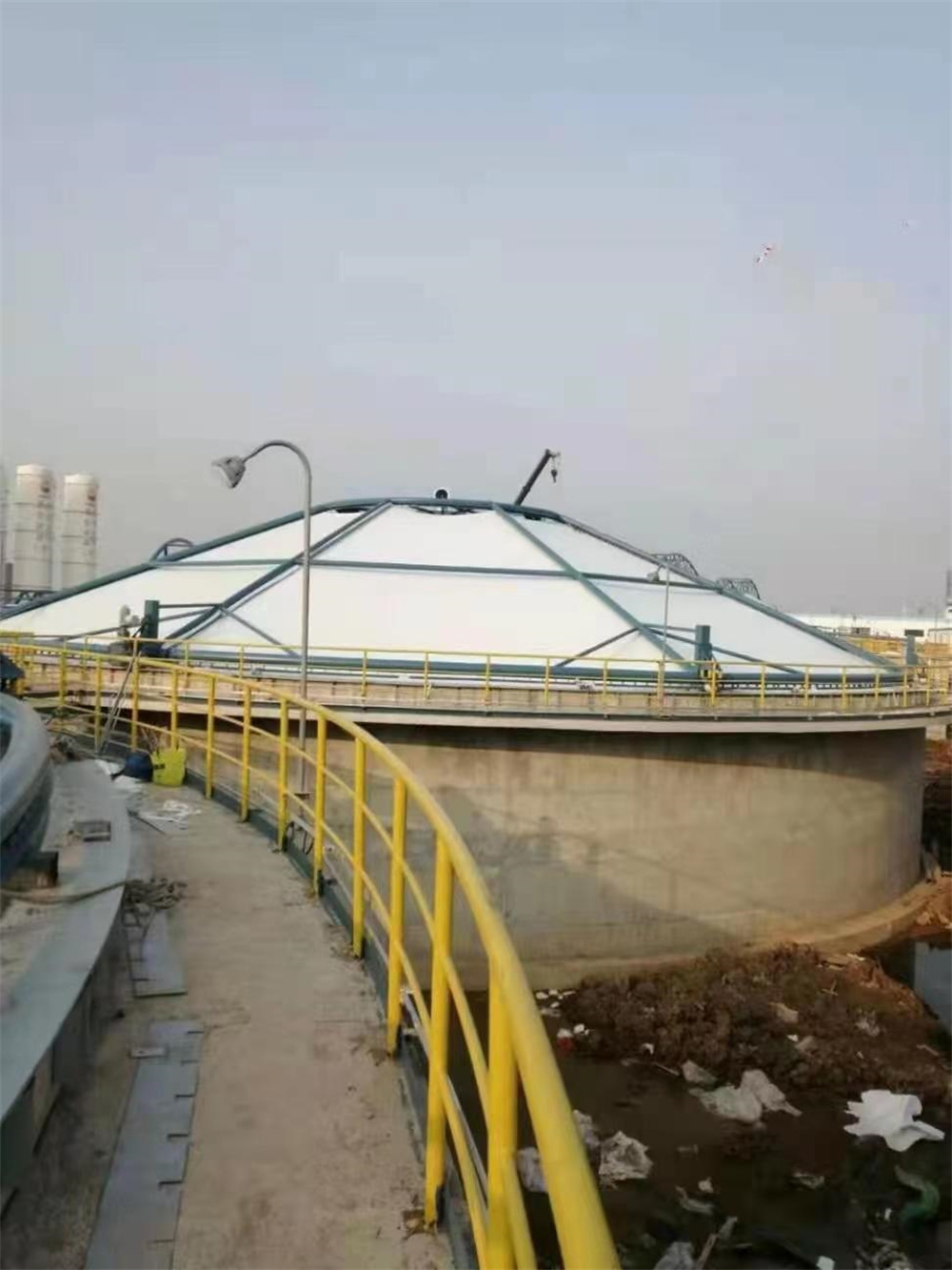 污水池加盖是针对污水池废气除臭采取的一种除臭方式。由于工业技术的不断进步,污水池加盖由传统的加盖方式演变为膜结构形式的加盖,两者最大的区别就是膜结构污水池加盖可以从根本上解决污水池内废气对钢结构等部件的腐蚀,延长钢结构的使用寿命,增加了膜结构污水池加盖的实用性。