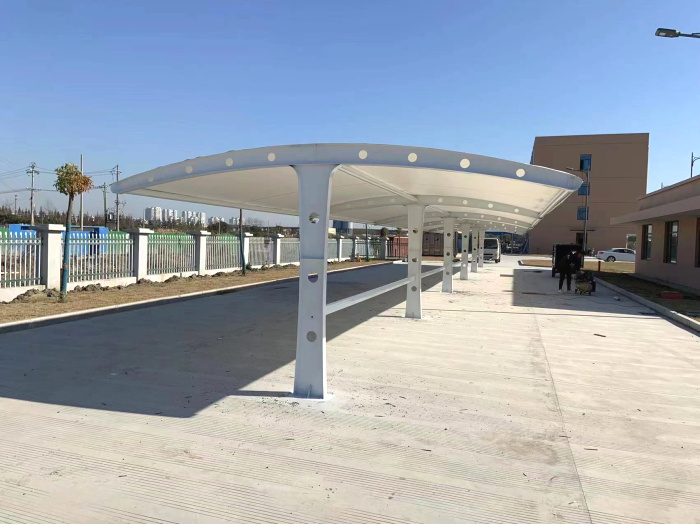 膜结构停车棚,自重轻,具有良好的受力特点——成为大跨度空间结构的主要形式之一。停车场的规划和建设成为现代城市规划的重要组成部分,在以后的建设里会变得越来越重要。膜结构轻巧、别致的造型在停车场及候车厅的建设中担当了重要角色,除了满足防风雨、防日晒等基本功能外,并有较好的标识招揽效果,展现了人们个性化的一面。