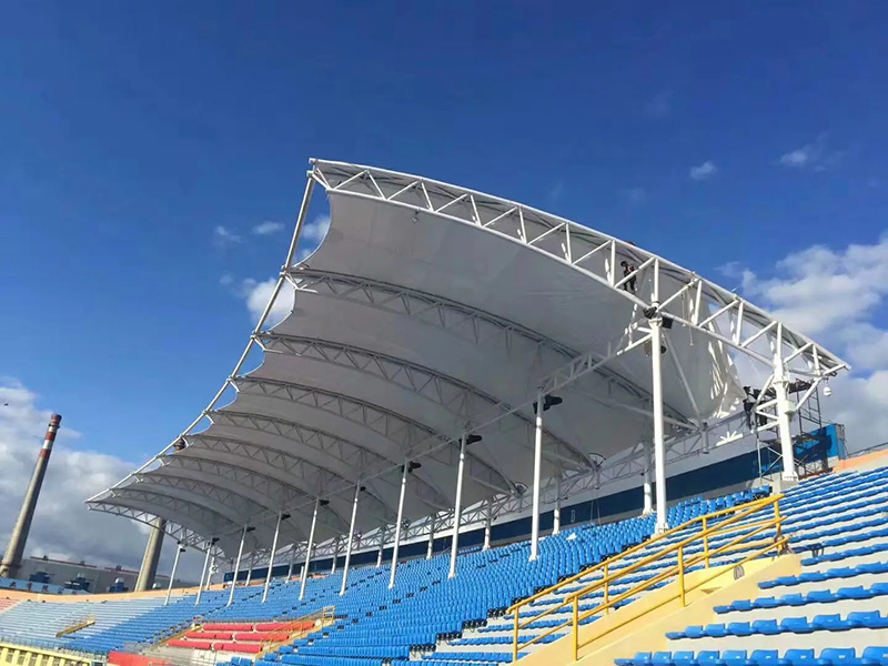 因此很多学校 或者体育场 都会选择张拉膜结构的形式来搭建体育看台,这样不仅可以保证体育看台的美观,还可以达到遮阳 遮雨的效果,后期使用过程中还方便维护,节省人工成本。