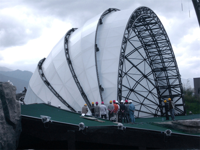 张拉膜结构塑造的景观小品是被人认可并推崇的,它最大的特点是灵活设计的造型,对体量小巧的户外景观装置尤为合适,这体现在一个“轻”字上面,膜结构所采用膜材材质“轻”巧、呈现的外部姿态“轻”盈飘逸,在施工安装方面也是“轻”松上阵。