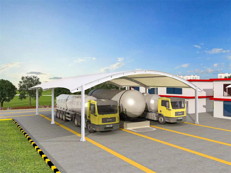 膜结构停车棚,自重轻,具有良好的受力特点——成为大跨度空间结构的主要形式之一。停车场的规划和建设成为现代城市规划的重要组成部分,在以后的建设里会变得越来越重要。膜结构轻巧、别致的造型在停车场及候车厅的建设中担当了重要角色,除了满足防风雨、防日晒等基本功能外,并有较好的标识招揽效果,展现了人们个性化的一面。
